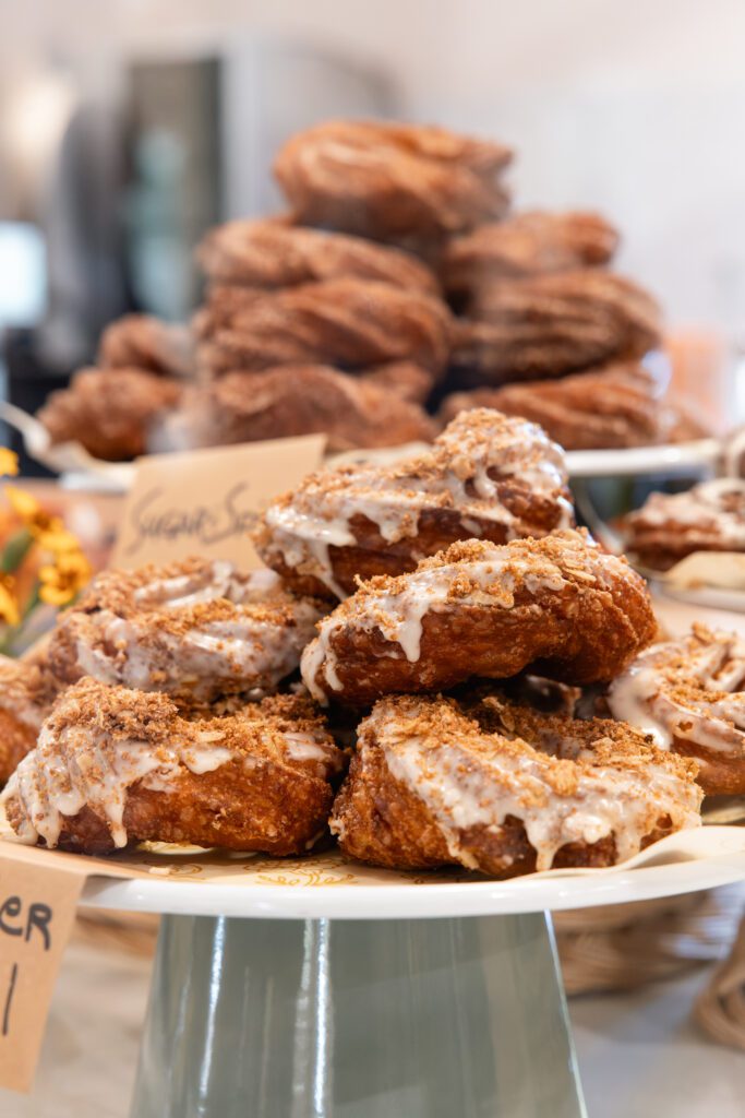 Farmer & The Bell is a cozy cafe serving up donuts with a brioche-style dough, plus pastries such as crullers, with crisp exteriors and custardy centers. They also serve soups, focaccia, coffee, and creemees, made by hand with local ingredients. With plenty of seating, there’s cozy tables and benches to curl up with coffee and delicious food inside their beautiful space. In the warmer months enjoy one of the outdoor tables under their bright umbrellas.