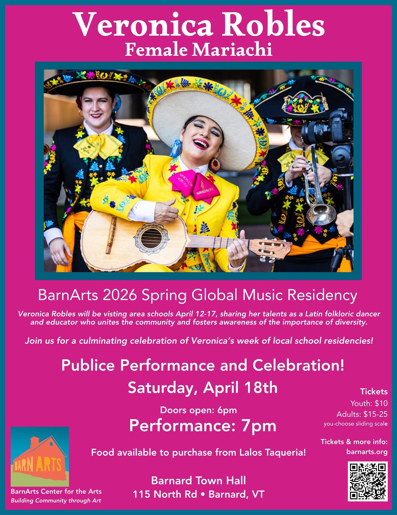 BarnArts welcomes Veronica Robles, Mariachi musician and educator, to the Upper Valley April 13-18 as the Spring Global Music Residency Artist. Celebrate her week of school workshops at her public...